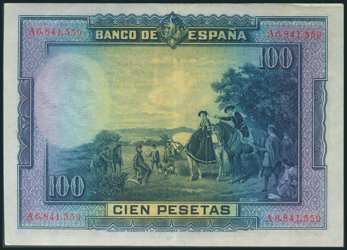 100 Pesetas. 15 de Agosto de 1928. Serie A. (Edifil 2017: 355a). EBC-.