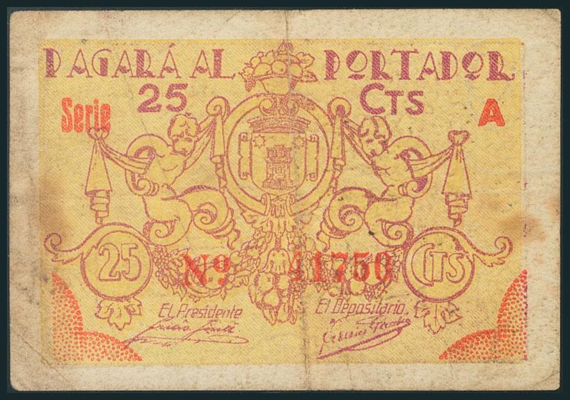 UTIEL (VALENCIA). 25 Céntimos. (1938ca). Serie A. (González: 5249). BC.