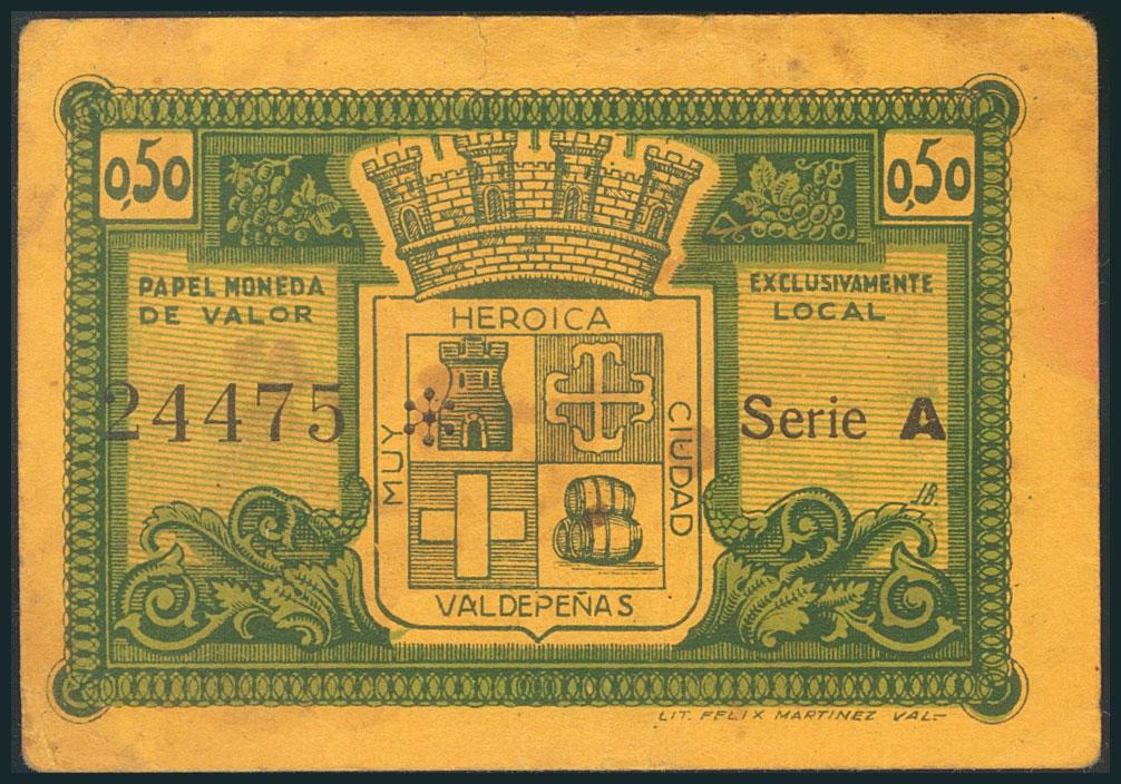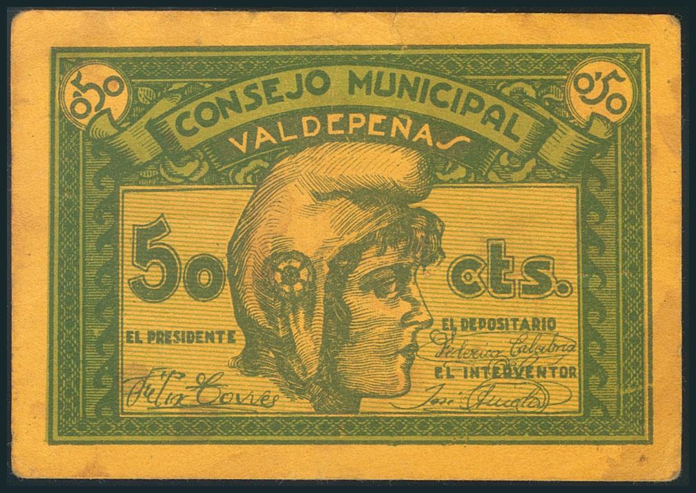 VALDEPEÑAS (CIUDAD REAL). 50 Céntimos. Serie A. (González: 5282). EBC.