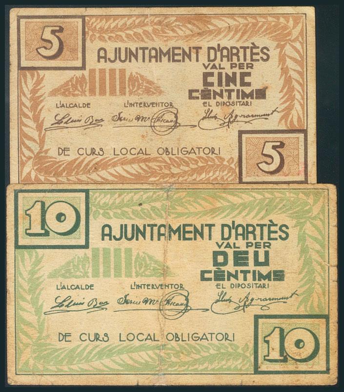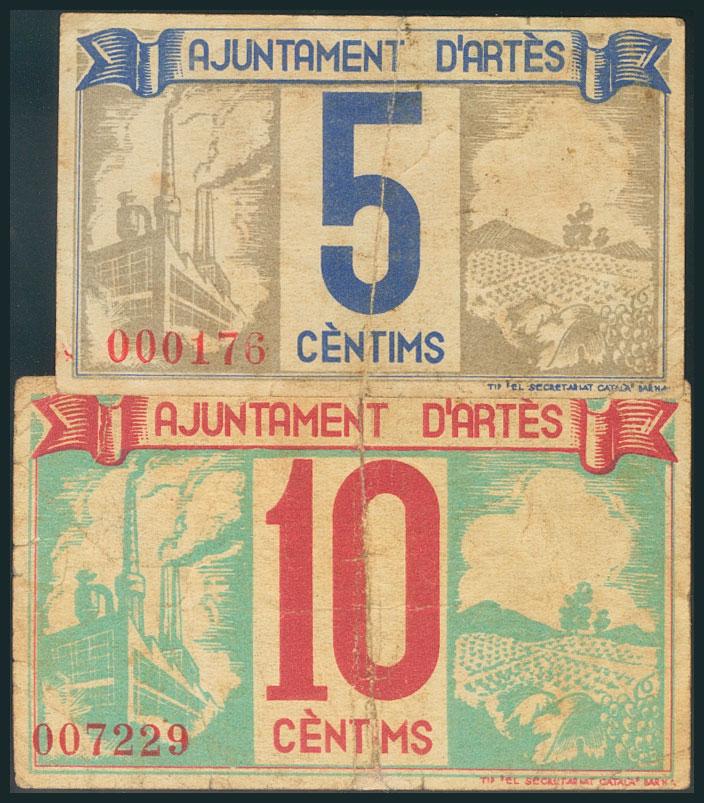 ARTES (BARCELONA). 5 Céntimos y 10 Céntimos. (1938ca). (González: 6413, 6414). MBC.