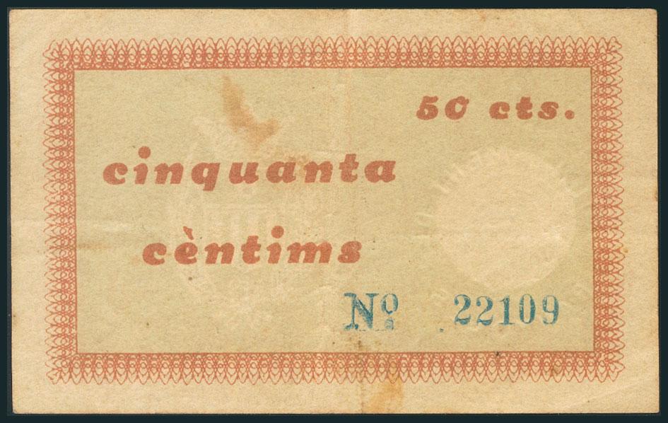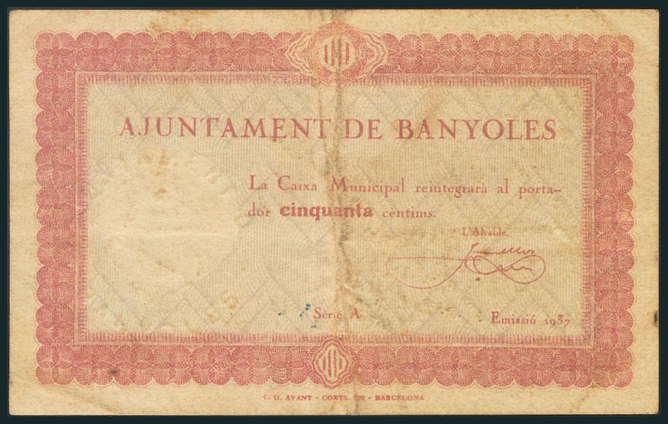 BANYOLES (BARCELONA). 50 Céntimos. 1937. Serie A. (González: 6505). MBC.