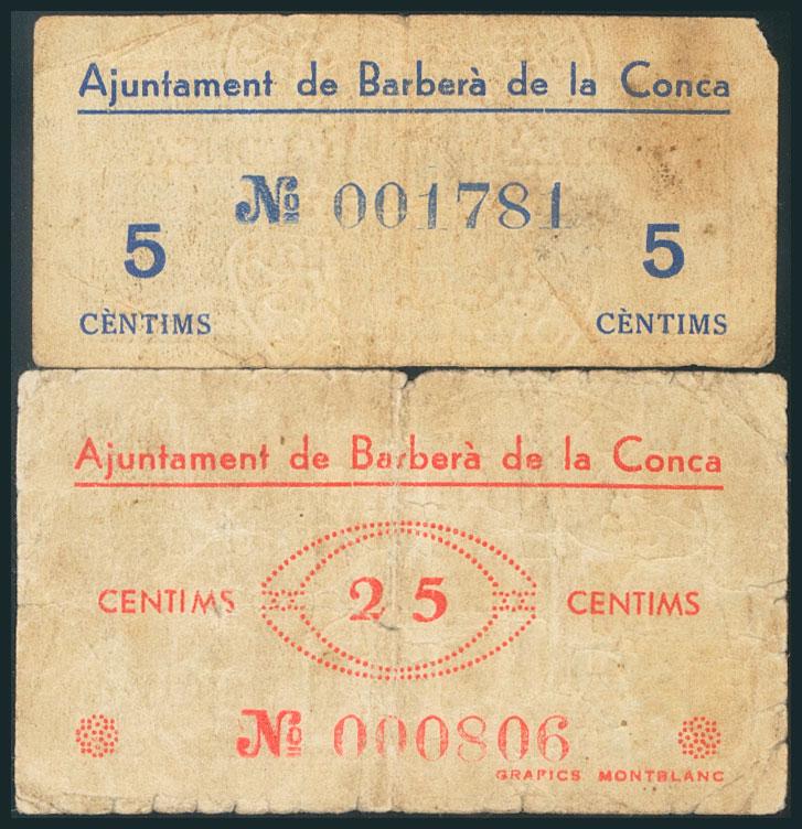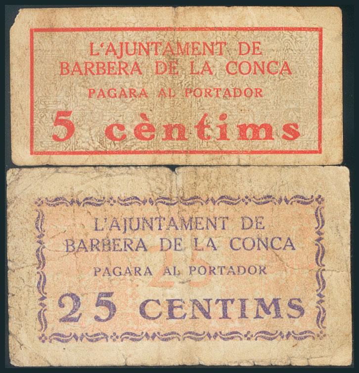 BARBERA DE LA CONCA (TARRAGONA). 5 Céntimos y 25 Céntimos. (1938ca). (González: 6517/18). RC.