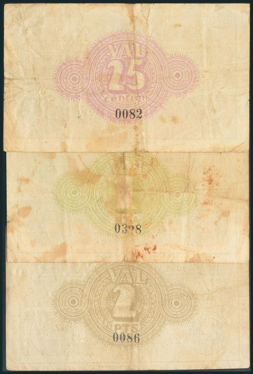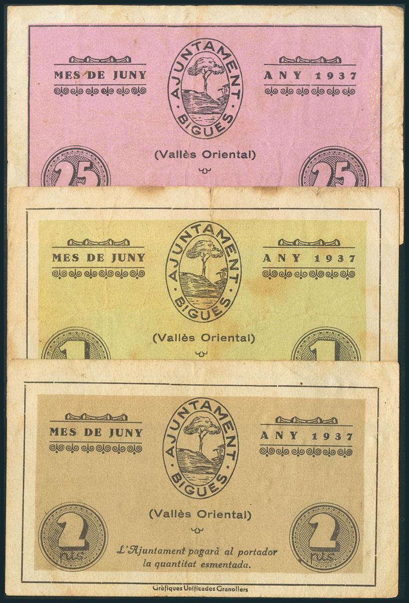 BIGUES (BARCELONA). 25 Céntimos, 1 Peseta y 2 Pesetas. Junio 1937. (González: 7051/53). Escasos. MBC.