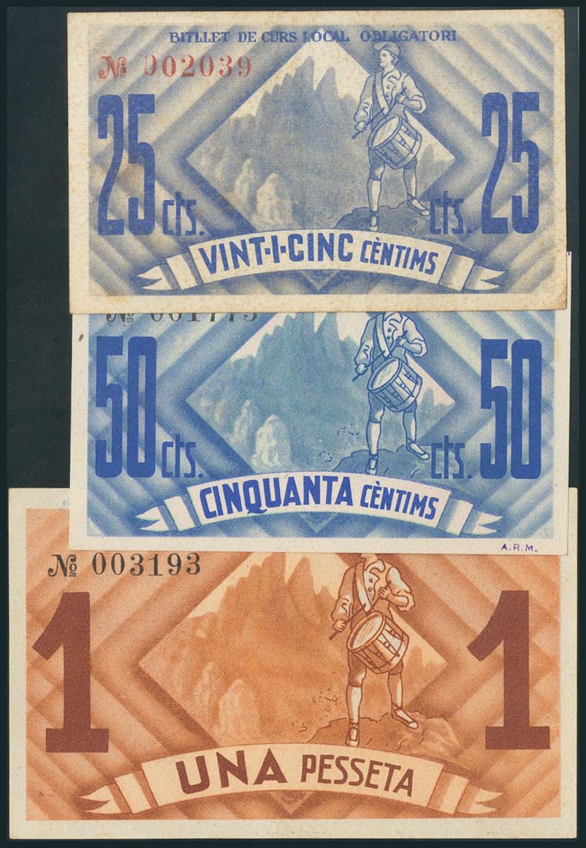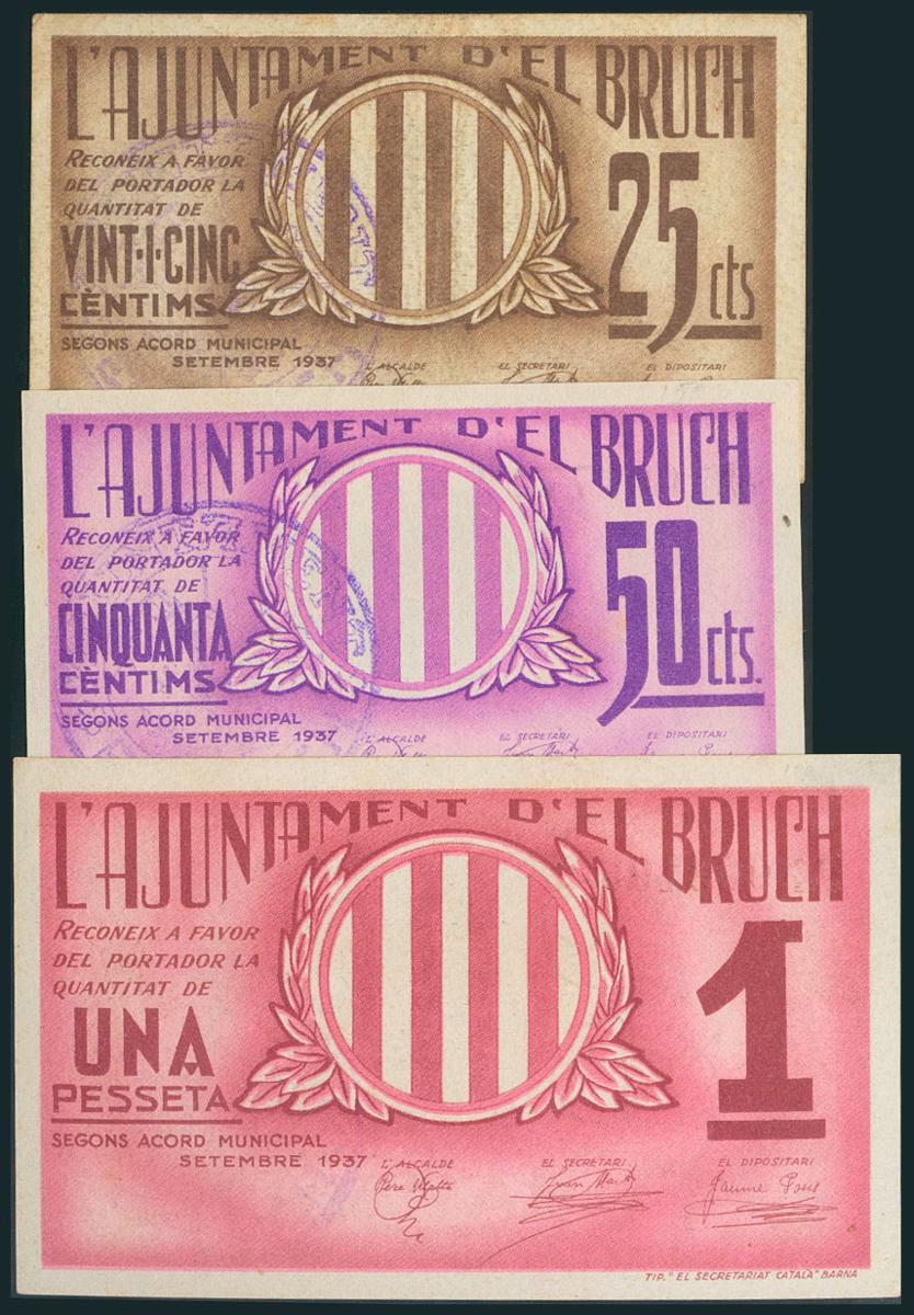 BRUCH (BARCELONA). 25 Céntimos, 50 Céntimos y 1 Peseta. Septiembre 1937. (González: 7206/08). EBC.