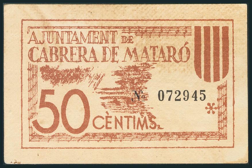 CABRERA DE MATARO (BARCELONA). 50 Céntimos. (1938ca). (González: 7238). MBC.
