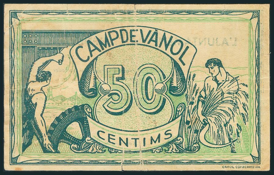 CAMPDEVANOL (GIRONA). 50 Céntimos. 1 de Junio de 1937. (González: 7328). MBC.