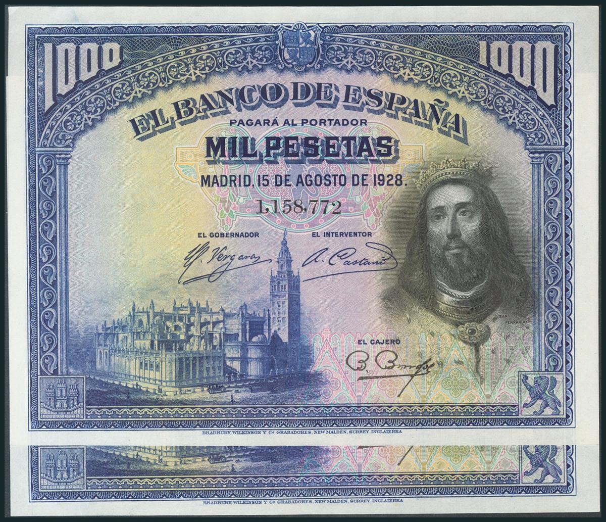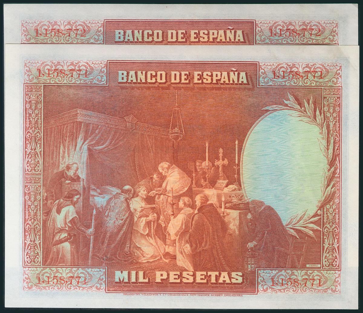 1000 Pesetas. 15 de Agosto de 1928. Pareja correlativa. Sin serie. (Edifil 2017: 357). EBC+.