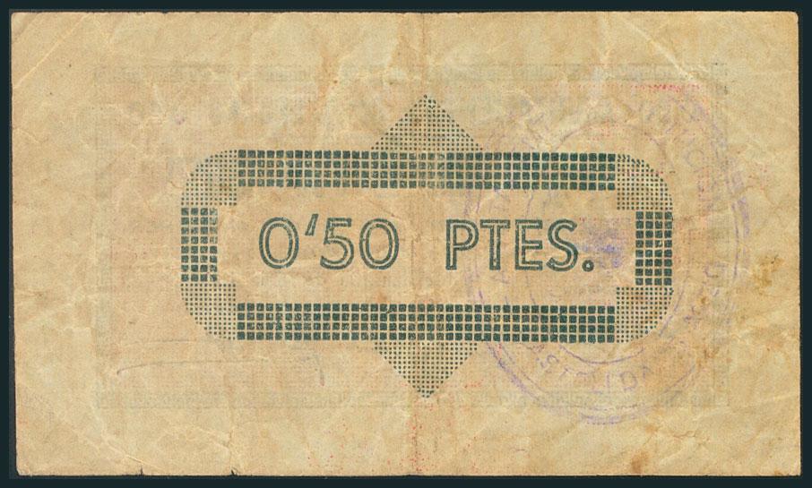 CASTELLDANS. 50 Céntimos. 21 de Mayo de 1937. (González: 7437). Muy raro. MBC.