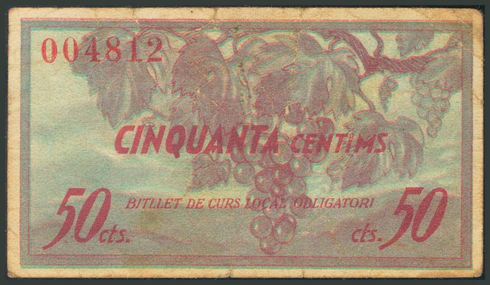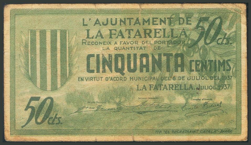 LA FATARELLA (TARRAGONA). 50 Céntimos. 6 de Julio de 1937. (González: 7834). BC.