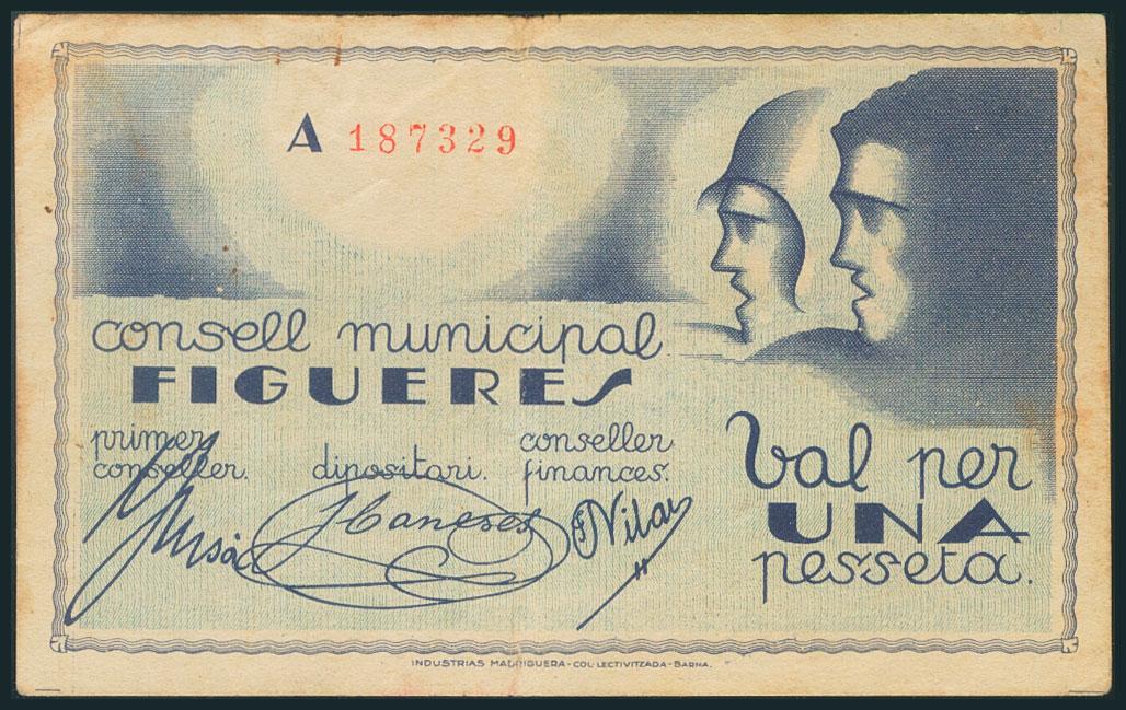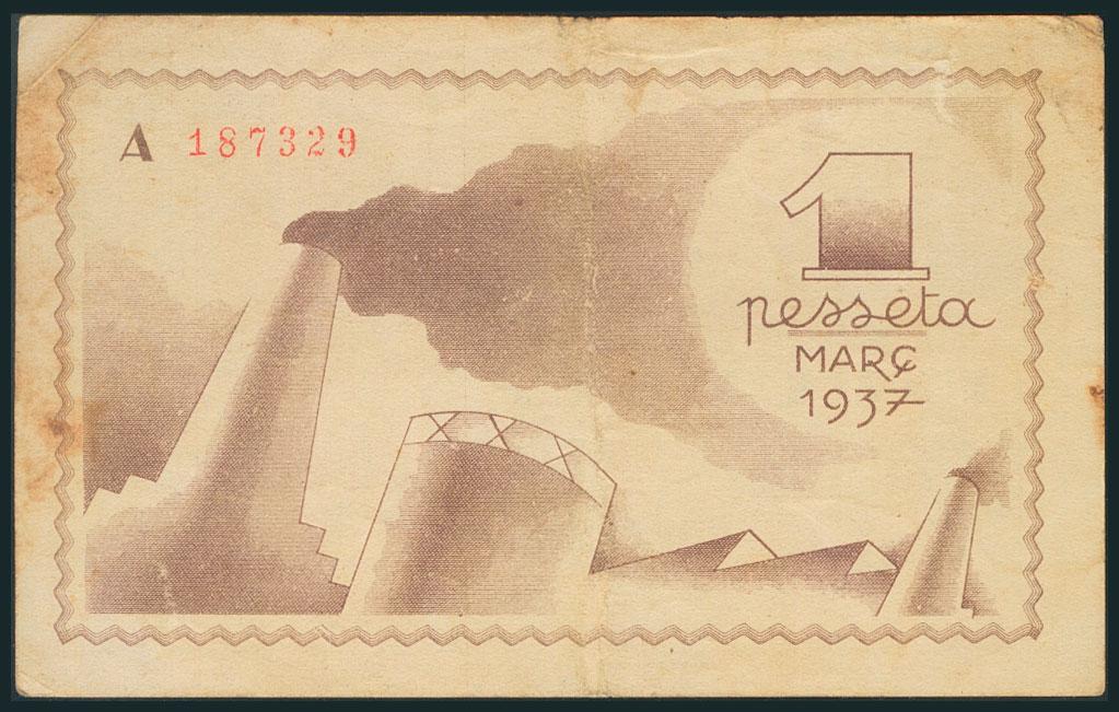 FIGUERES (BARCELONA). 1 Peseta. Marzo 1937. Serie A. (González: 7850). MBC.