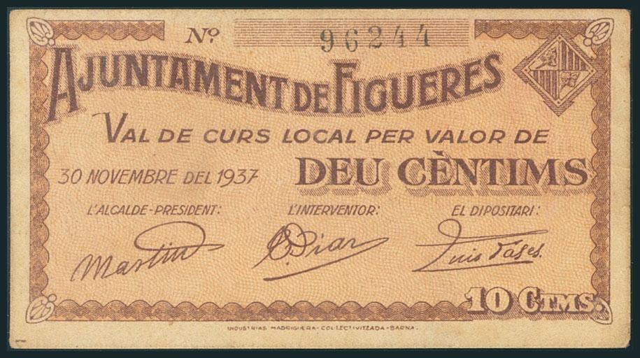 FIGUERES (GERONA). 10 Céntimos. 30 de Noviembre de 1937. (González: 7852). EBC.