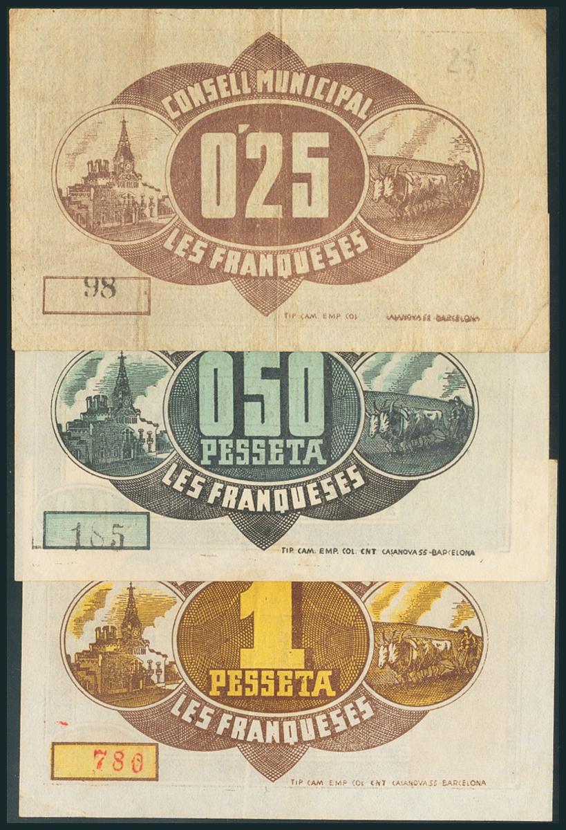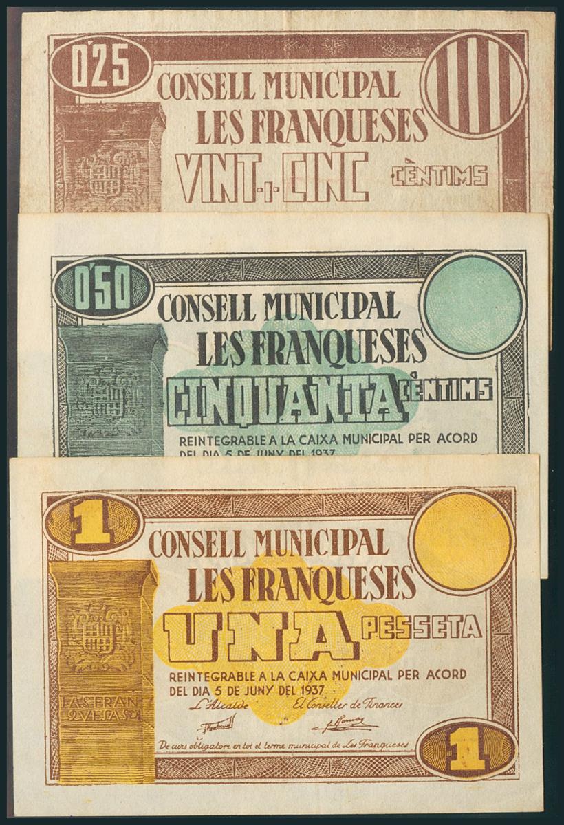 FRANQUESES DEL VALLES (BARCELONA). 25 Céntimos, 50 Céntimos y 1 Peseta. 5 de Junio de 1937. (González: 7929/31). EBC.