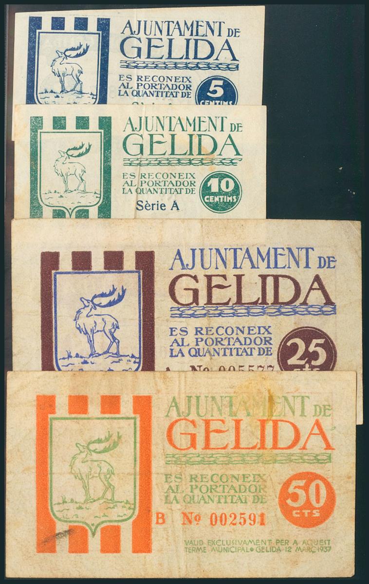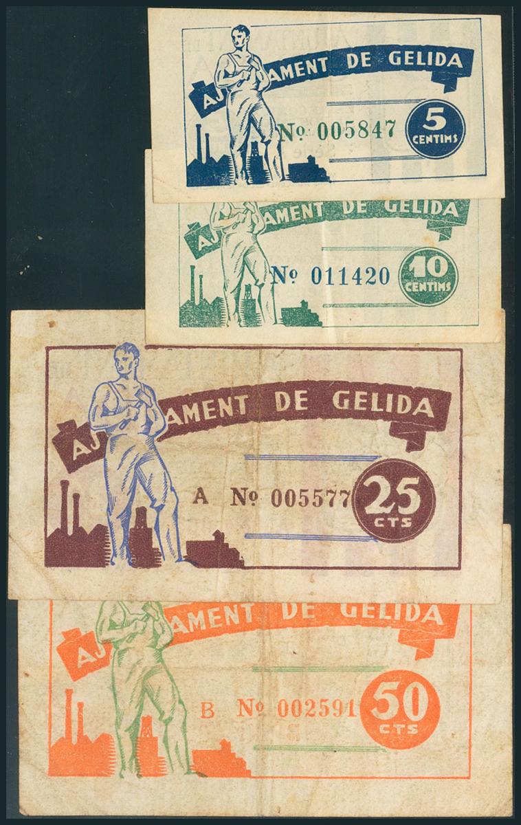 GELIDA (BARCELONA). 5 Céntimos, 10 Céntimos, 25 Céntimos y 50 Céntimos. 12 de Marzo 1937. Series A y B. (González: 8014/17). MBC/BC.