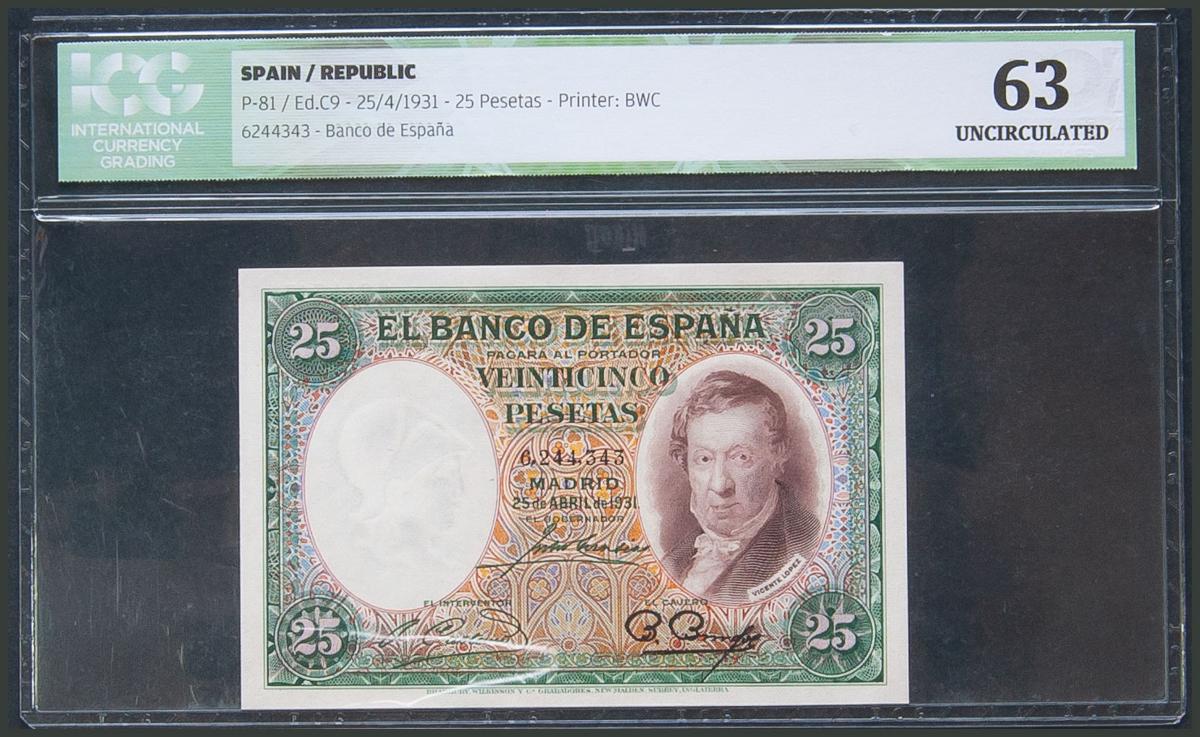 25 Pesetas. 25 de Abril de 1931. Sin serie. (Edifil 2017: 358). SC. Encapsulado ICG63.