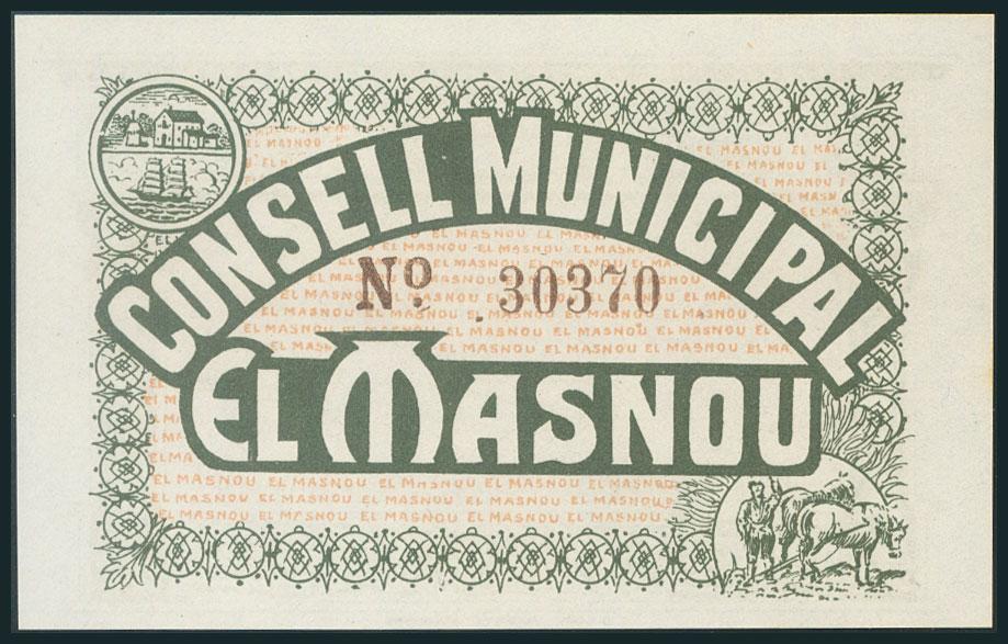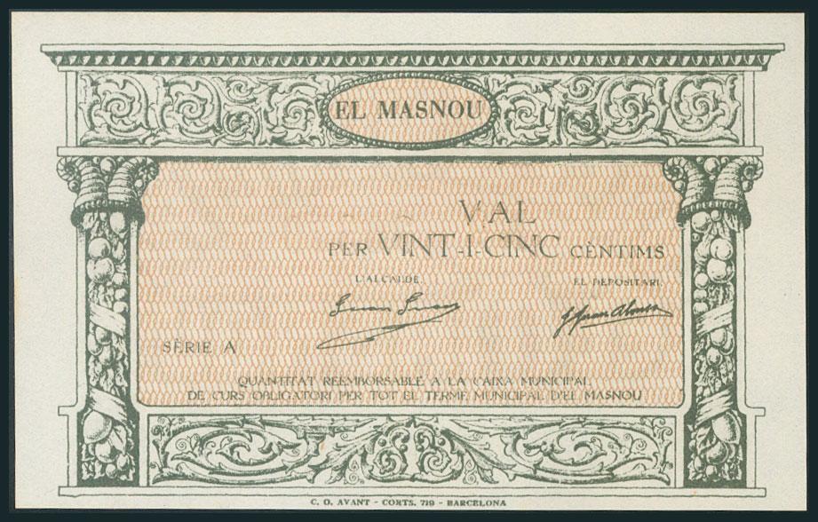 EL MASNOU (BARCELONA). 25 Céntimos. (1938ca). Serie A, sin estampar el valor de 25 cts. (González: 8605). EBC+.