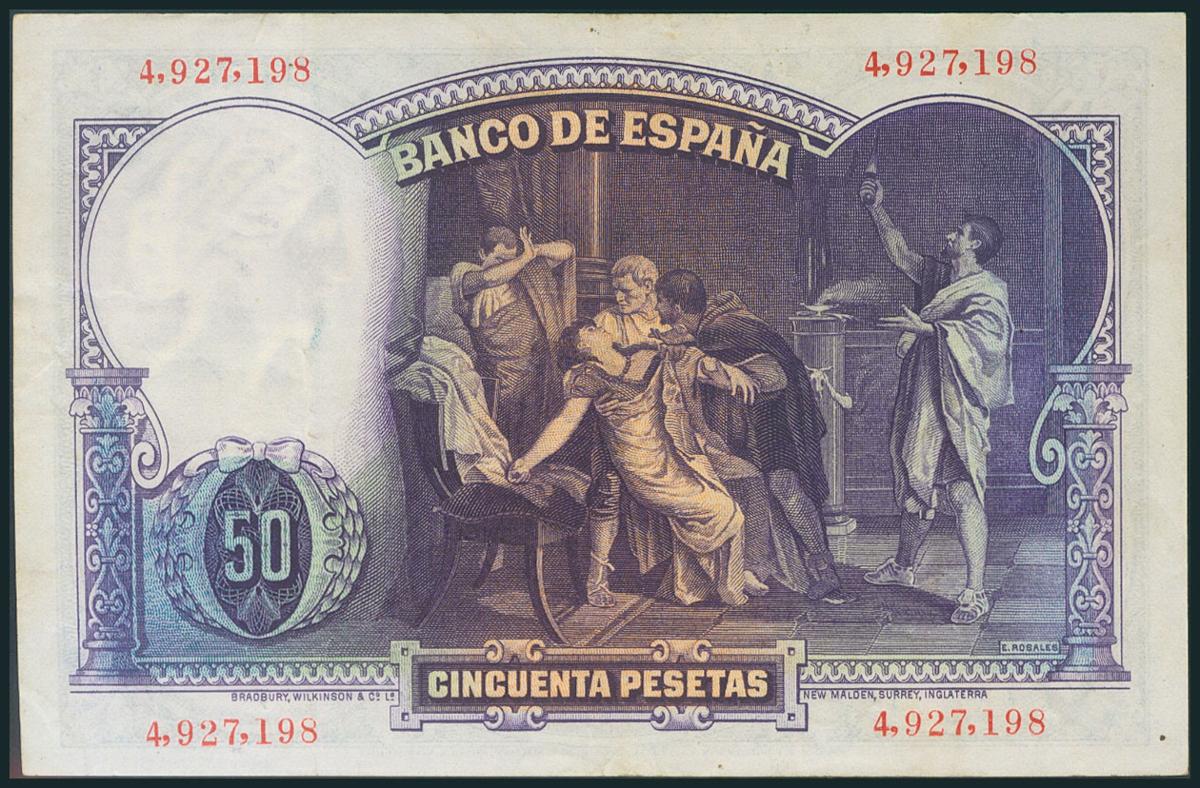 50 Pesetas. 15 de Abril de 1931. Sin serie. (Edifil 2017: 359). Conserva gran parte del apresto original. EBC-.