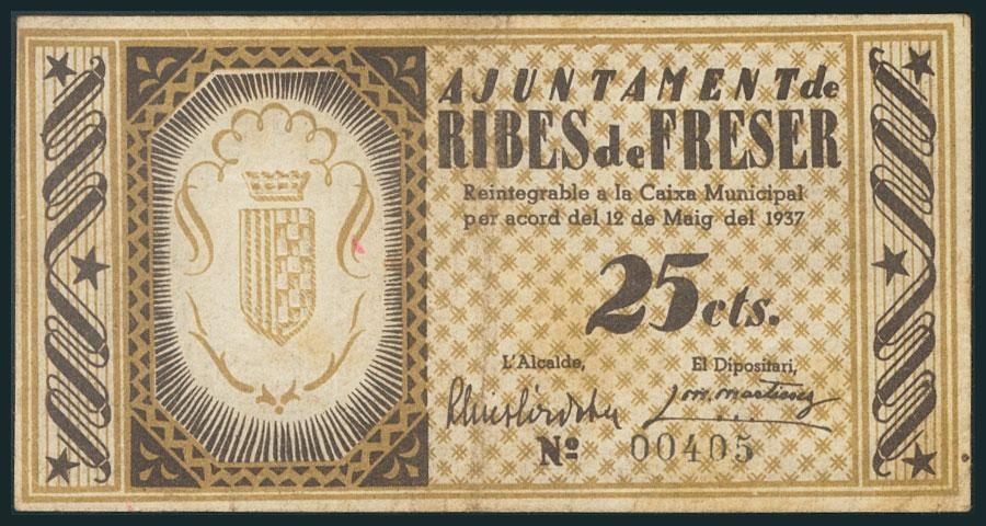 RIBES DE FRESER (GERONA). 25 Céntimos. 12 de Mayo de 1937. (González: 9620). EBC.