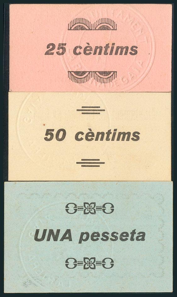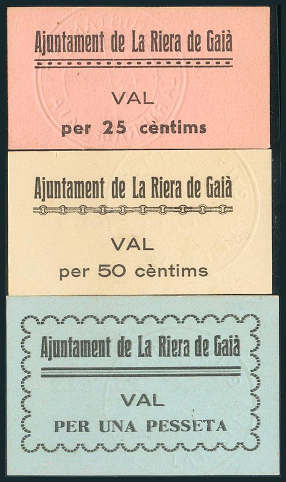 RIERA DE GAIA (TARRAGONA). 25 Céntimos, 50 Céntimos y 1 Peseta. (1938ca). (González: 9639/41). SC.