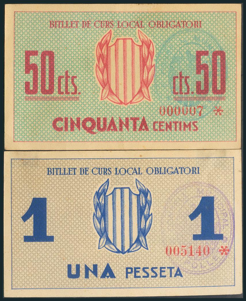 RIPOLLET (BARCELONA). 50 Céntimos y 1 Peseta. 25 de Junio de 1937. (González: 9667/68). MBC/RC.