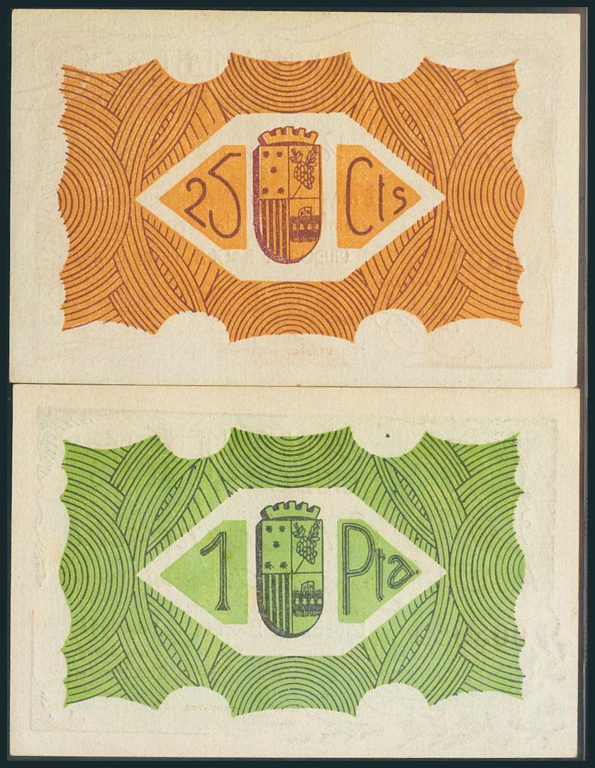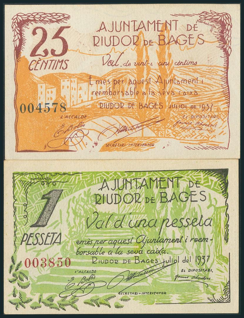 RIUDOR DE BAGES (BARCELONA). 25 Céntimos y 1 Peseta. Julio 1937. (González: 9699/9700). EBC.