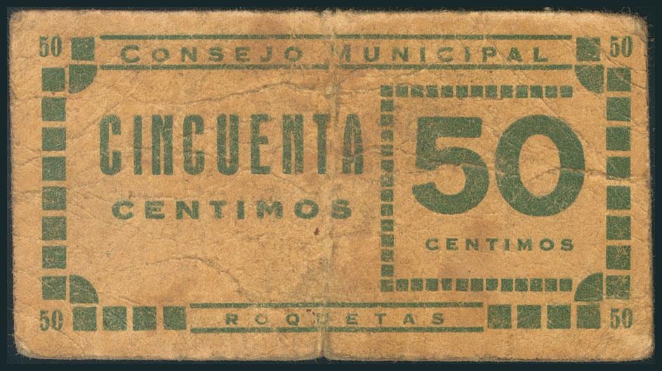 ROQUETAS (TARRAGONA). 50 Céntimos. 1938. (González: 9731). Raro. RC.