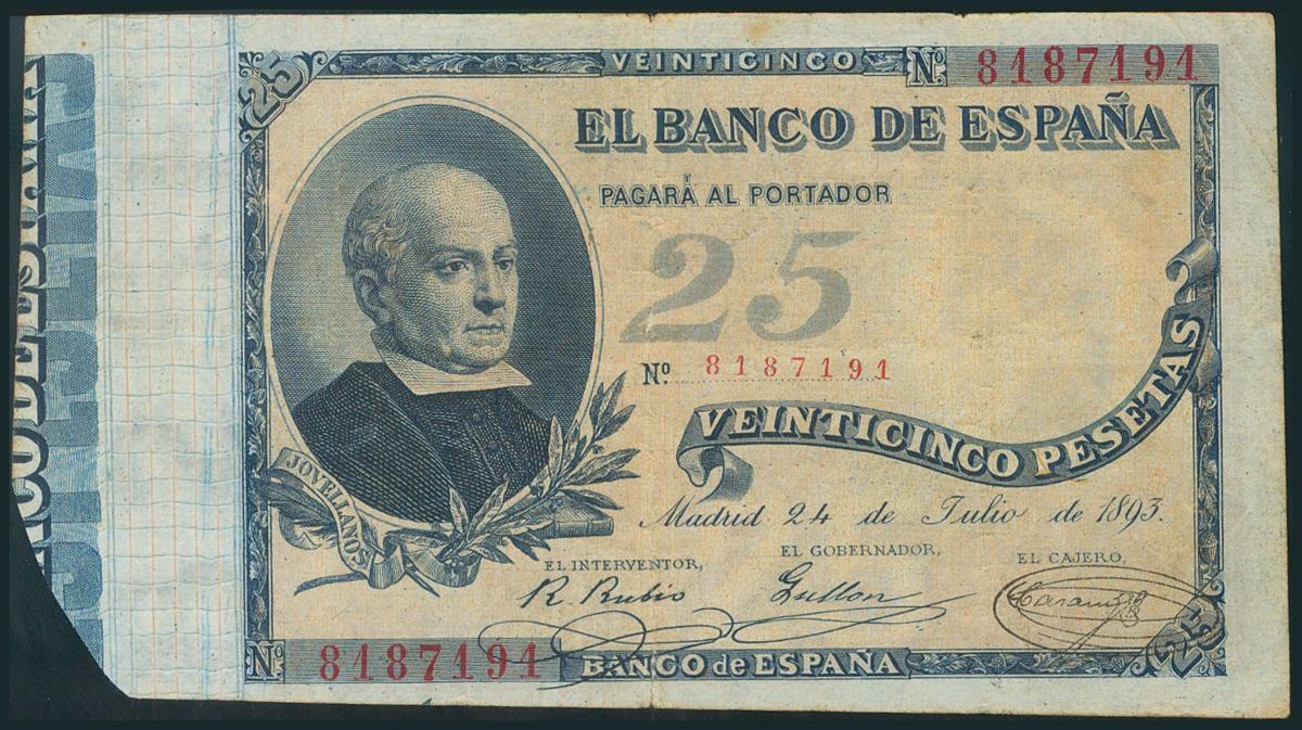 25 Pesetas. 24 de Julio de 1893. Sin serie. (Edifil 2017: 300). BC+.