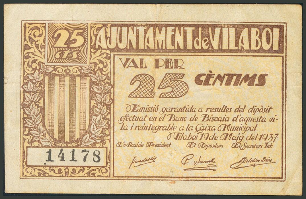 VILABOI (BARCELONA). 25 Céntimos. 19 de Mayo de 1937. (González: 10679). BC.