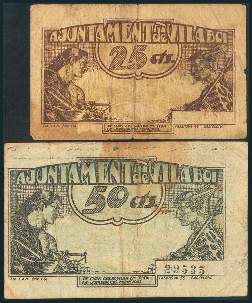 VILABOI (BARCELONA). 25 Céntimos y 50 Céntimos. 19 de Mayo de 1937. (González: 10679/80). RC.