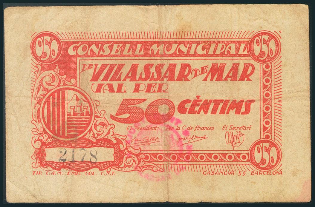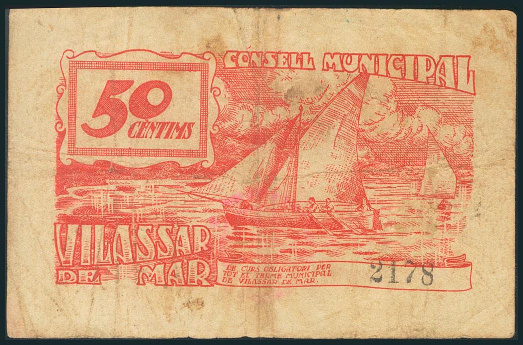 VILASSAR DE MAR (BARCELONA). 50 Céntimos. (1938ca). (González: 10866). BC.