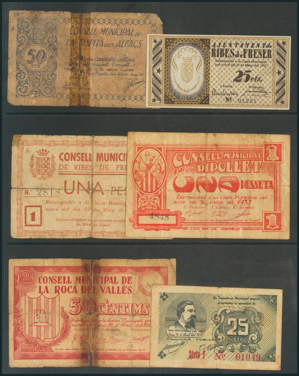 Conjunto de 6 billetes de diversas localidades catalanas. A EXAMINAR.