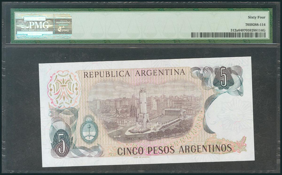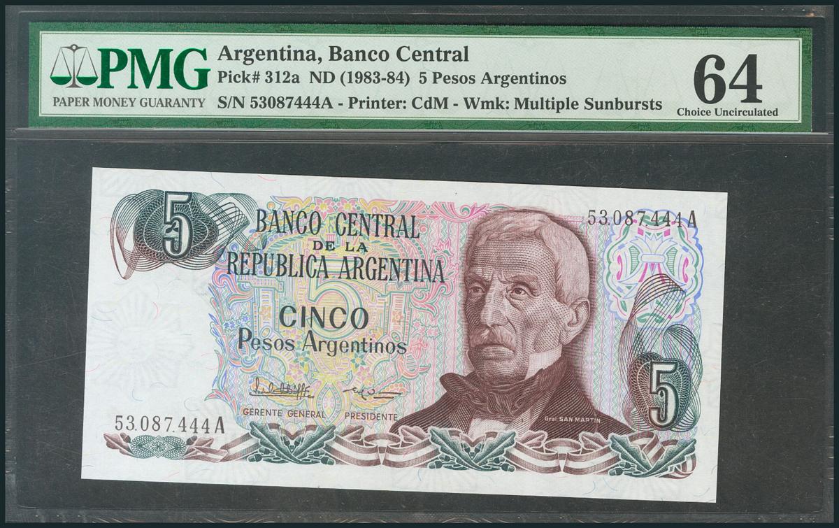 ARGENTINA (ARGENTINA). 5 Pesos. 1983. Serie A. (Pick: 312a). Encapsulado PMG64. SC.