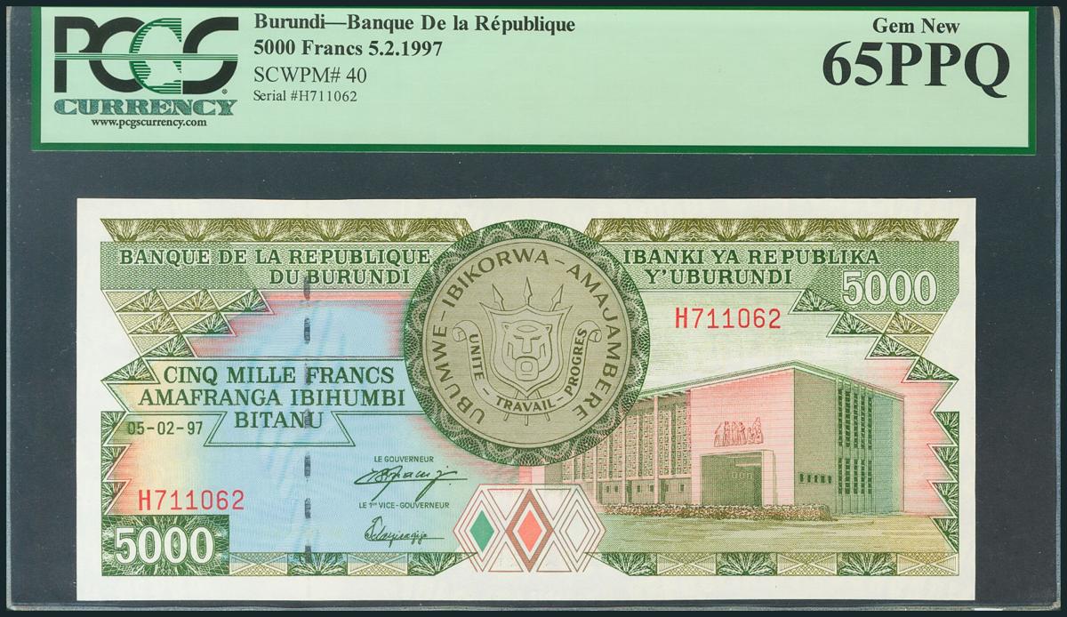 BURUNDI. 5000 Francos. 5 de Febrero de 1997. Serie H. (Pick: 40). Encapsulado por PCGS65PPQ. SC.