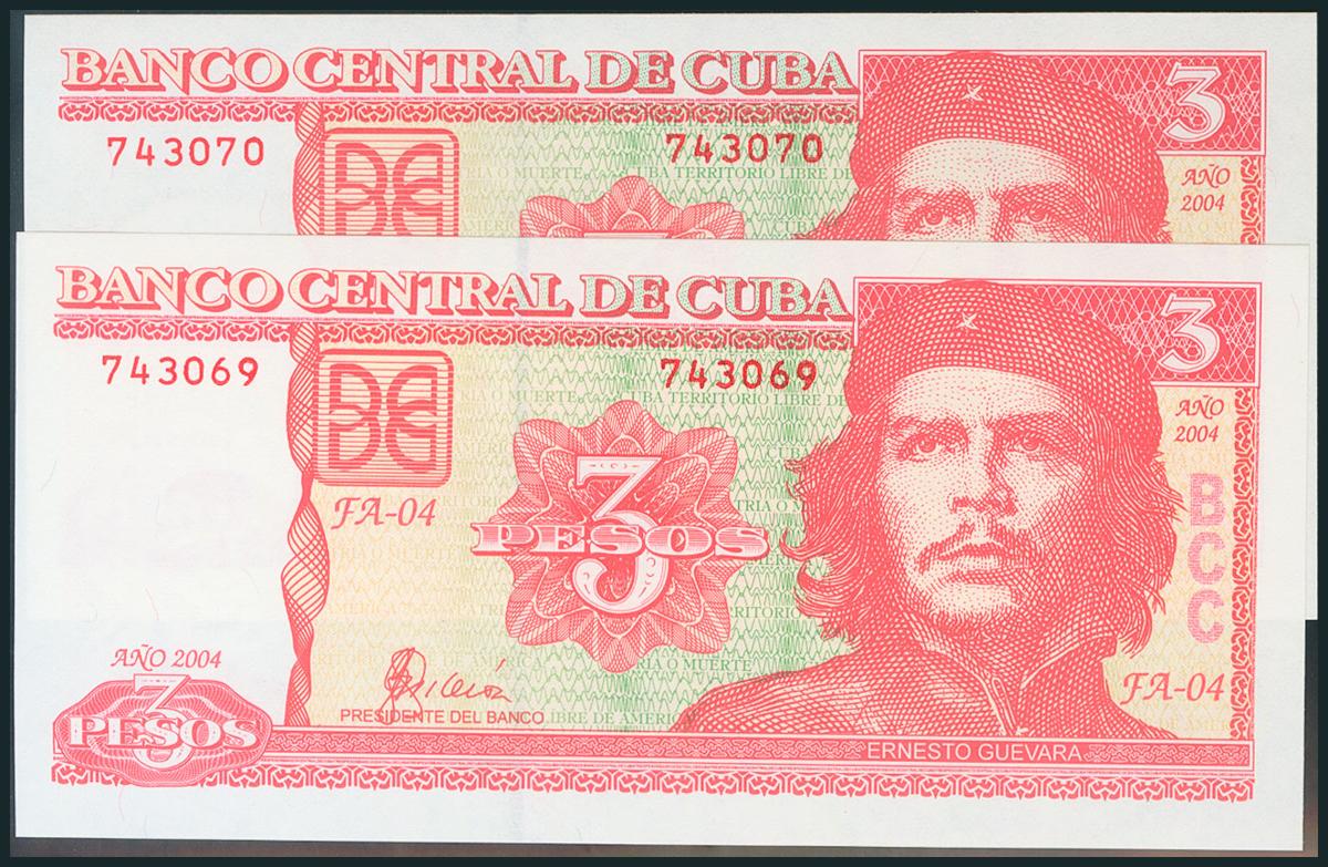 CUBA. 3 Pesos. 2005. Pareja correlativa. (Pick: 127a). SC.