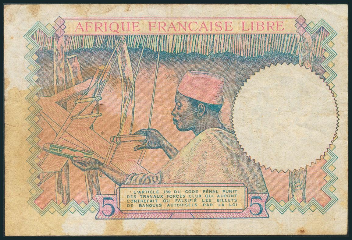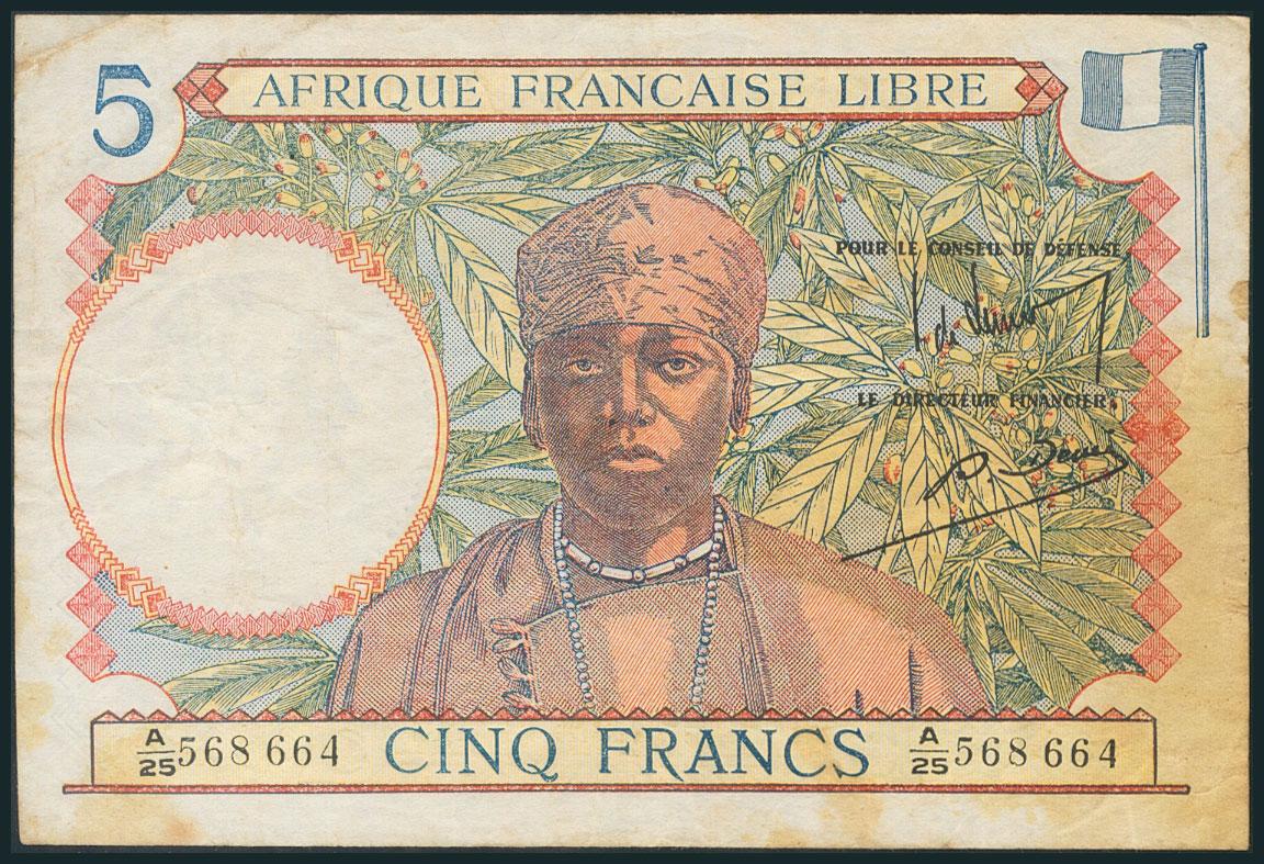 AFRICA ECUATORIAL FRANCESA (FRENCH EQUATORIAL AFRICA). 5 Francs. 1941. (Pick: 6). MBC.