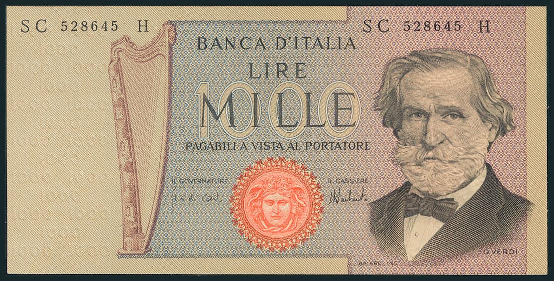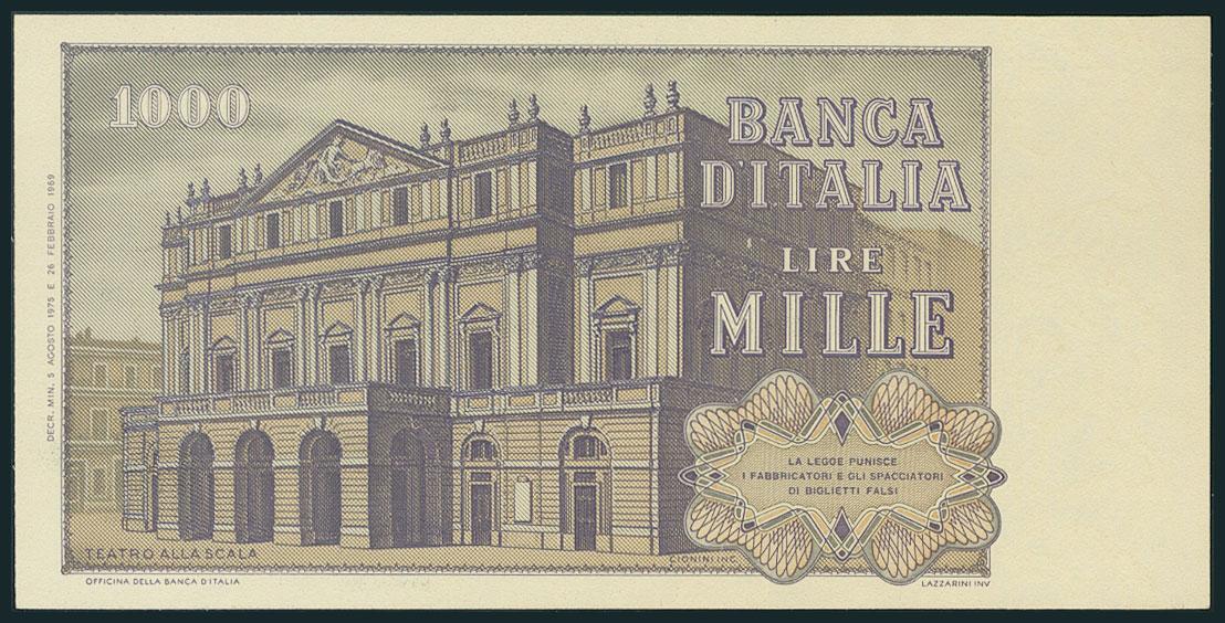 ITALIA (ITALY). 1000 Liras. 5 de Agosto de 1975. Firma: Carli y Barbárico. Serie SC. (Pick: 101d). SC.