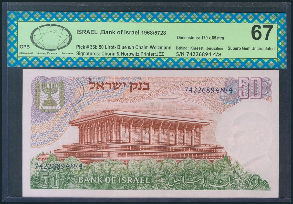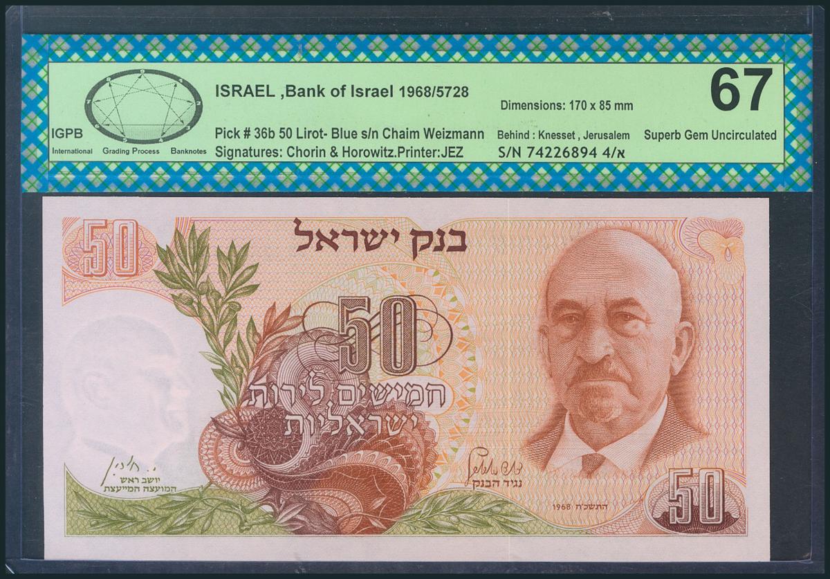 ISRAEL. 50 Lirot. 1968. (Pick: 36b). Encapsulado IGPB67. SC.