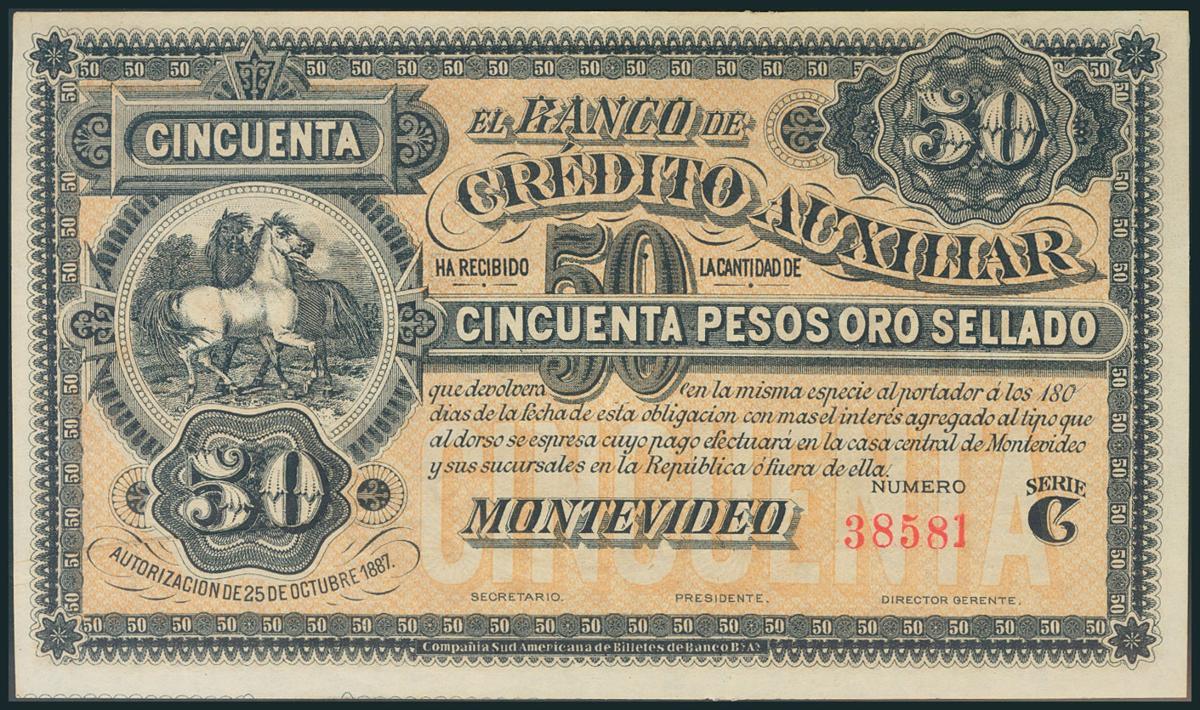 URUGUAY. 50 Pesos. 25 de Octubre de 1887. Serie C. (Pick: 5165r). EBC.