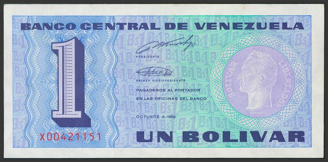VENEZUELA. 1 Bolívar. 5 de Octubre de 1989. Firmado por Pedro R. Tirico Hijo y José Vicente Rodríguez Aznar. Serie X. (Pick: 68, Sleiman: 5). SC.