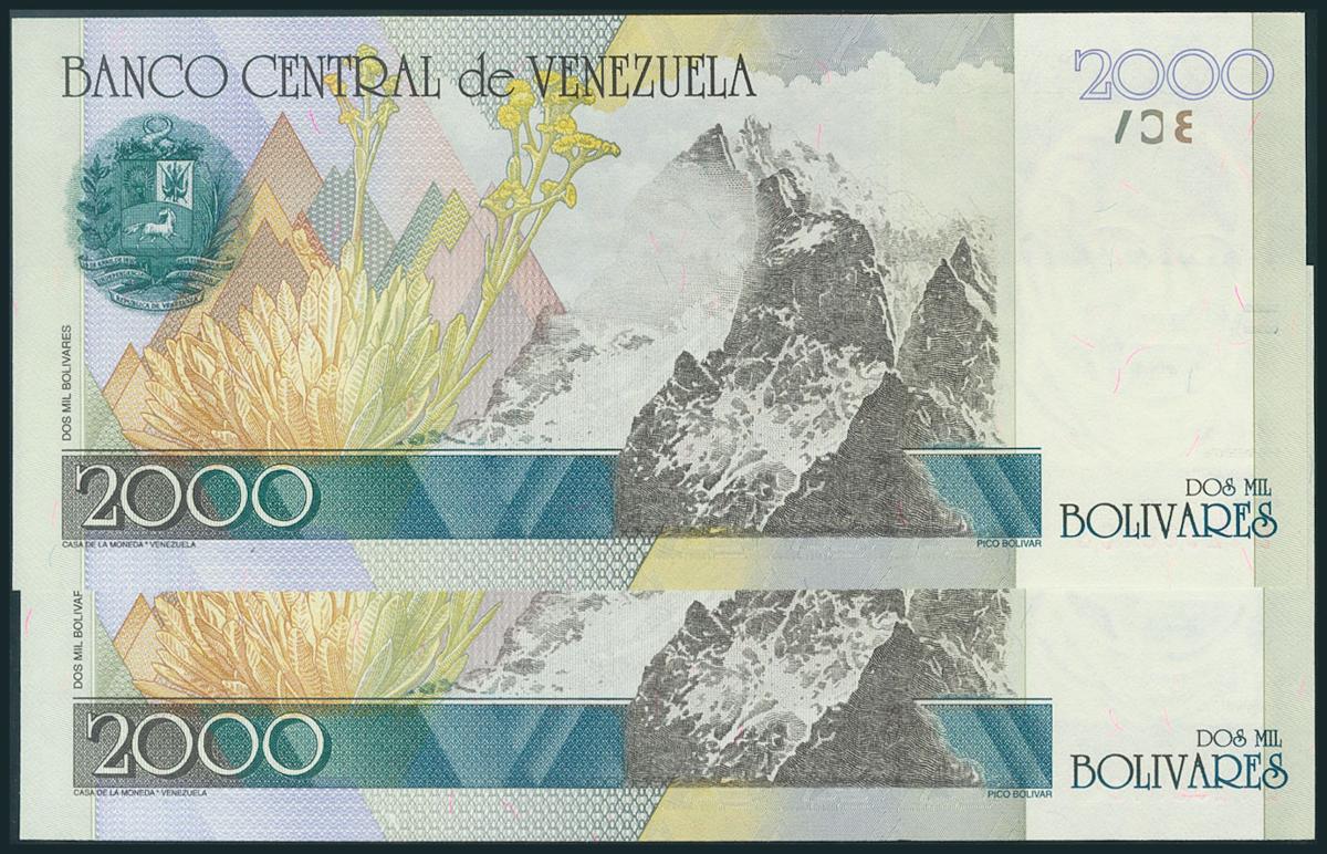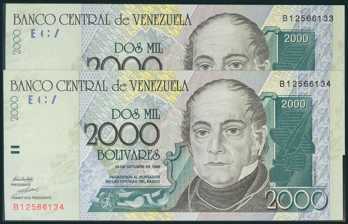 VENEZUELA. 2000 Bolívares. 29 de Octubre de 1998. Pareja correlativa. Serie B. (Pick: 80). SC.