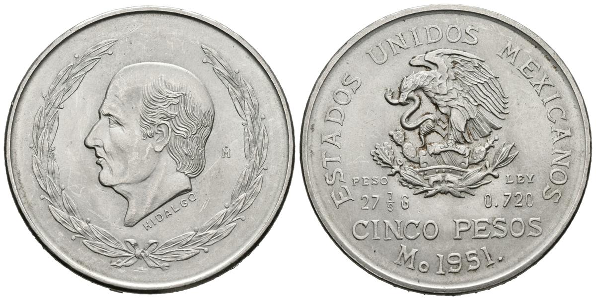 MEXICO. 5 Pesos. (Ar. 27,91g/40mm). 1951. (Km#467). SC.