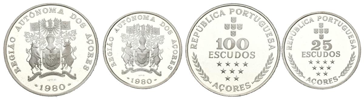 PORTUGAL. Set conmemorativo de 2 monedas. "AUTONOMIA REGIONAL ODS AÇORES". 1980. PROOF. Incluye estuche oficial y certificados.