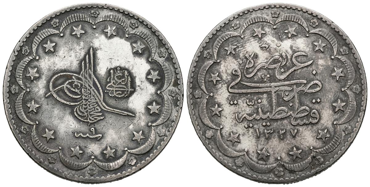 TURQUIA. 20 Kushru. (Ar. 24,26g/37mm). 1327/9H (1917). (Km#780). MBC+.