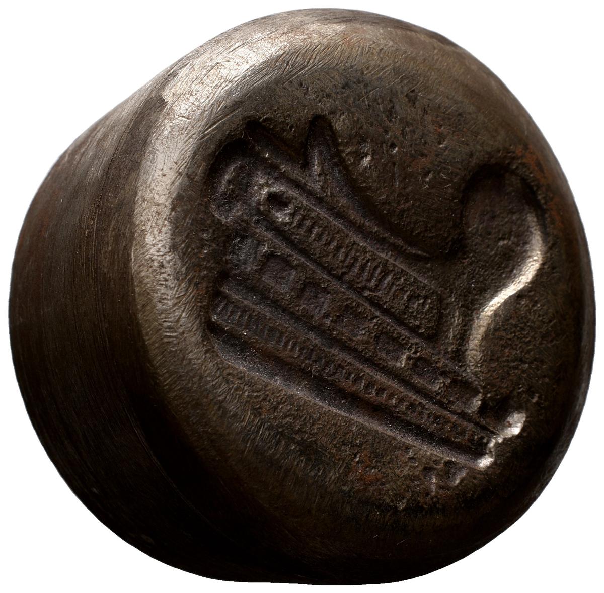 Reproducción antigua del cuño de anverso y reverso de un Aes Grave de la Roma Republicana. EBC.