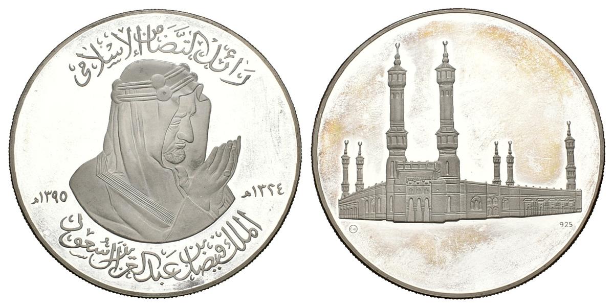 ARABIA SAUDI. Medalla. (Ar. 59,94g/50mm). 1395H (1975). Muerte del rey Faisal. PROOF. Presentada en estuche.