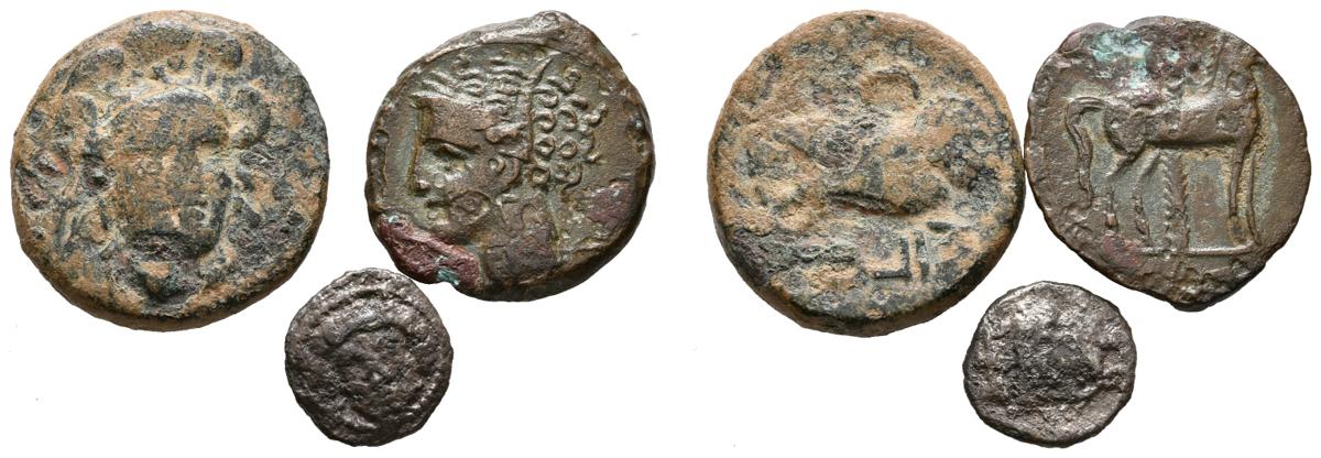 GRECIA ANTIGUA. Lote compuesto por 3 monedas de diferentes lugares y épocas. A EXAMINAR.