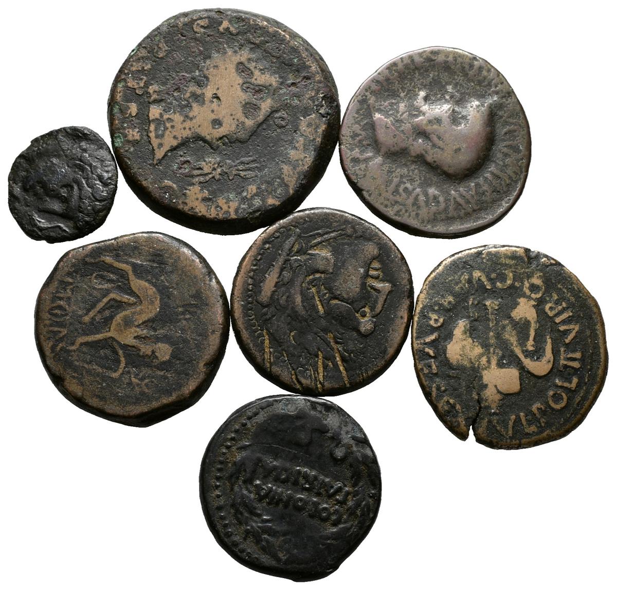 HISPANIA ANTIGUA. Bonito conjunto compuesto por 7 bronces ibéricos, de diferentes valores, así como diferentes cecas. Diferentes estados de conservación. A EXAMINAR.
