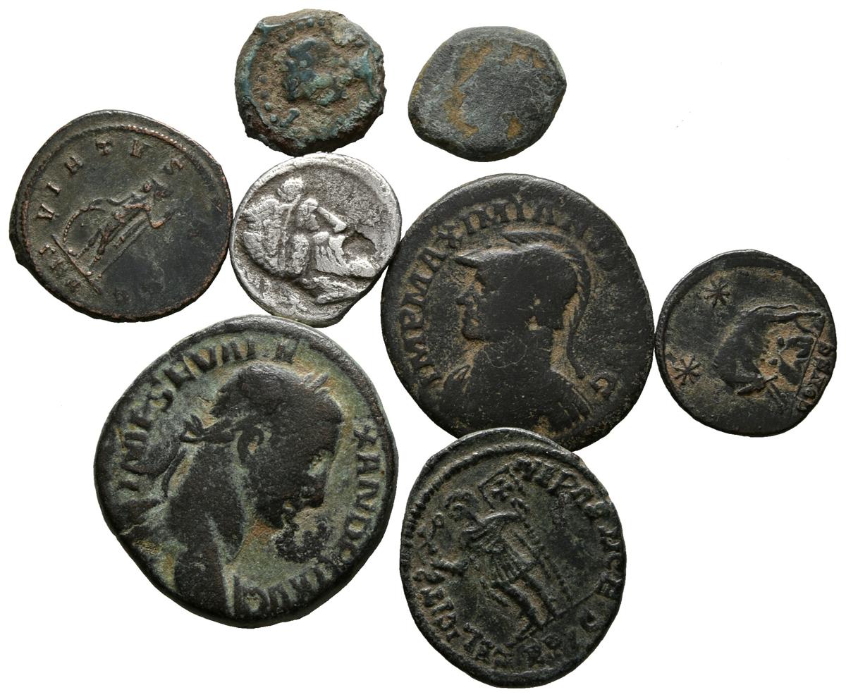 HISPANIA ANTIGUA e IMPERIO ROMANO. Lote compuesto por 8 monedas de distintas cecas ibéricas y distintos emperadores romanos. A EXAMINAR.