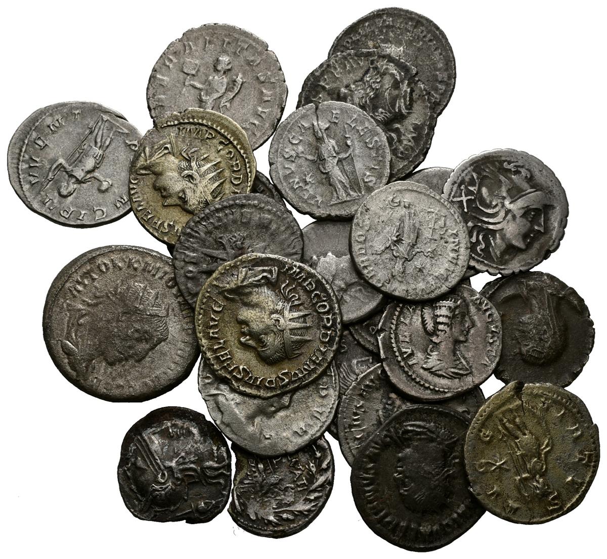 REPUBLICA ROMANA e IMPERIO ROMANO. Lote compuesto por 25 monedas de plata de diferentes emperadores romanos de diferentes épocas y valores. A EXAMINAR.