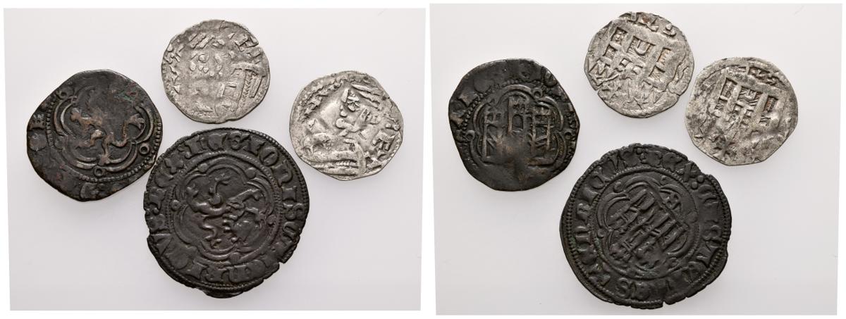 EPOCA MEDIEVAL. Conjunto de 4 cobres medievales castellanos de diferentes reyes medievales, cecas, valores y estados de conservación. A EXAMINAR.