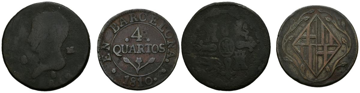 MONARQUIA ESPAÑOLA. Lote compuesto por 2 monedas de cobre de José Napoleón. A EXAMINAR.